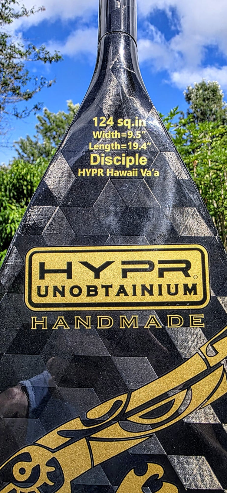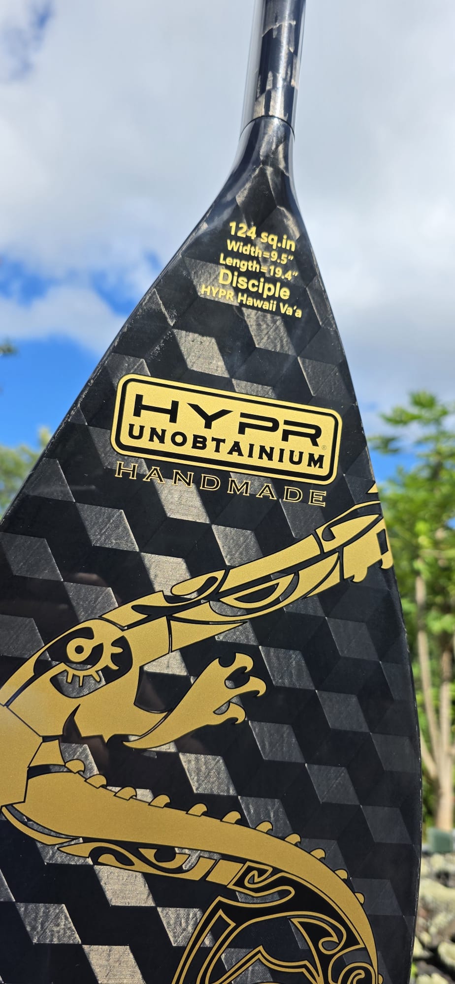 With a 124 square inch blade 9.5" width and 18" length, this paddle delivers explosive power in every catch.